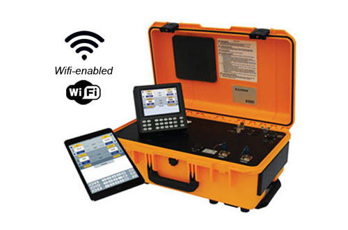 Laversab 6300 大氣數據測試器是針對商務噴氣機和商用飛機等通用航空的多功能雙通道RVSM皮託管靜態測試儀。 用於飛機的Pitot Static systems 系統進行洩漏檢查和精度檢查,空速及高度測試範圍最高可達690 Knots和60,000英尺。通常對高度計,空速指示器和VSI進行精度檢查。 6300大氣數據測試器配備有大鍵盤和顯示螢幕的Remote unit,可拆卸可供運轉8小時電池(選配),更寬的使用工作溫度(選配),使用者可編輯“profiles”測試程序以加速測試。 每年只需要進行一次校準。 6300可以下載APP透過iPad或其他平板電腦控制。